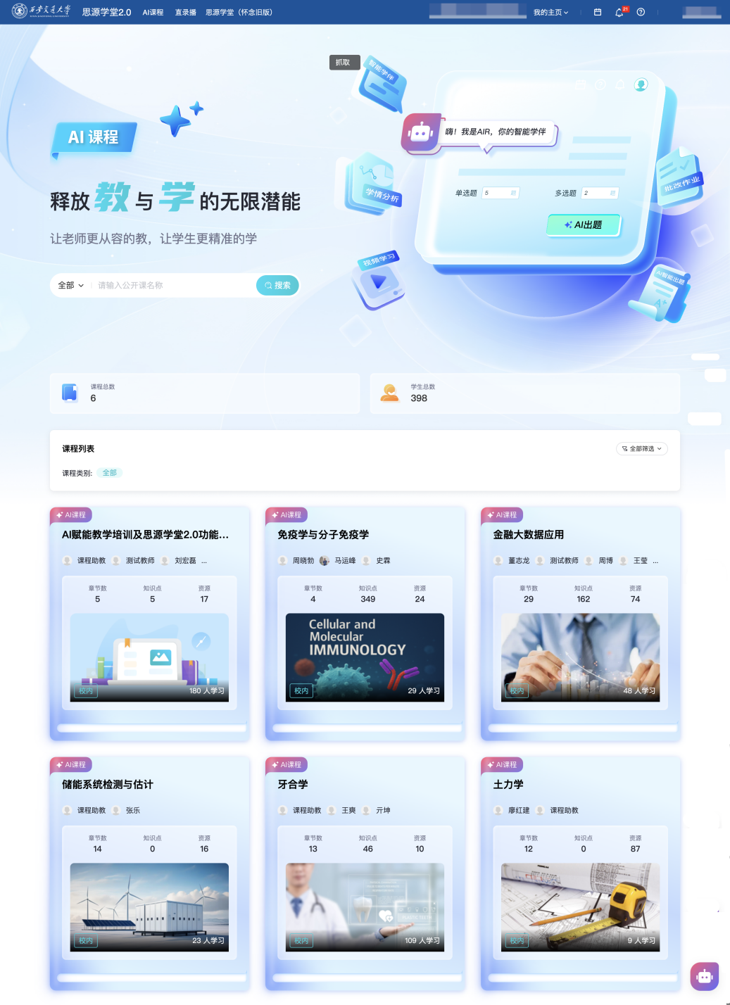 上一条:一附院儿科李晖传授团队受邀加入国际NBAS/NBO培训师取领军者会议同时,西安交上将持续鞭策人工智能赋能教育讲授向纵深成长,这是继两次入选典型案例之后,帮力学生临床诊疗思维的培育;优化办理办事系统,育、讲授方式和培育模式等全流程、全链条摸索人机协同育人新范式,是鞭策人工智能赋能课程讲授的活泼实践。西安交大积极响应国度关于教育数字化的计谋摆设,此中《金融大数据使用》《药学生物学》等课程已构成AI赋能课程扶植的示范效应。拓展平台功能模块,西安交大全面摆设建成了新版思源私塾聪慧讲授平台(),近日,实现多模态课程讲授资本的汇聚取使用共享。